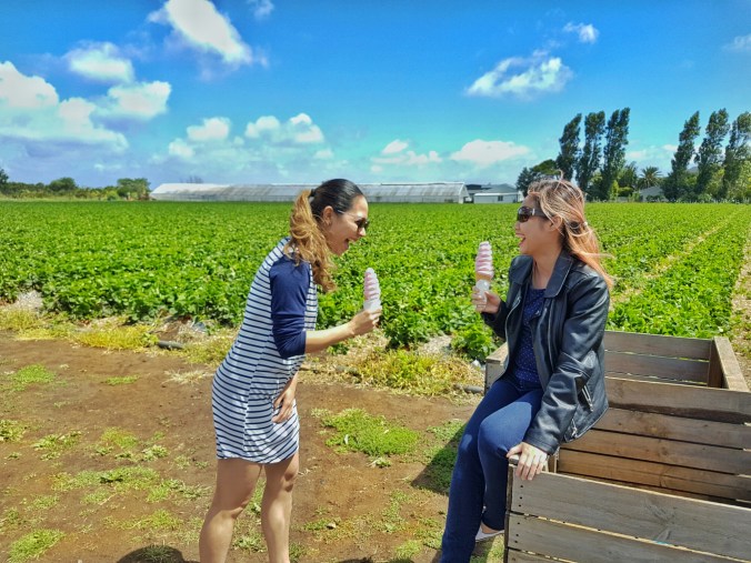Last weekend…we were up in Auckland for a wedding. On our way to the airport on Sunday (for our flight back home to Wellington), our friend Jason took us to THE STRAWBERRY FARM in Mangere to try their strawberry ice cream.